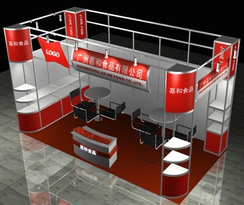 其实标摊同样可以做出特装的效果,充分利用现有资源和智慧,如效果图中的标摊,利用铝合金、展板、亚克力板画面和灯箱效果的设计和拼装,搭配漂亮的八棱柱特装标摊,适当添加几支射灯,一个标准的特装展位就出来了,特装小标摊和设计需要注意以下几点: