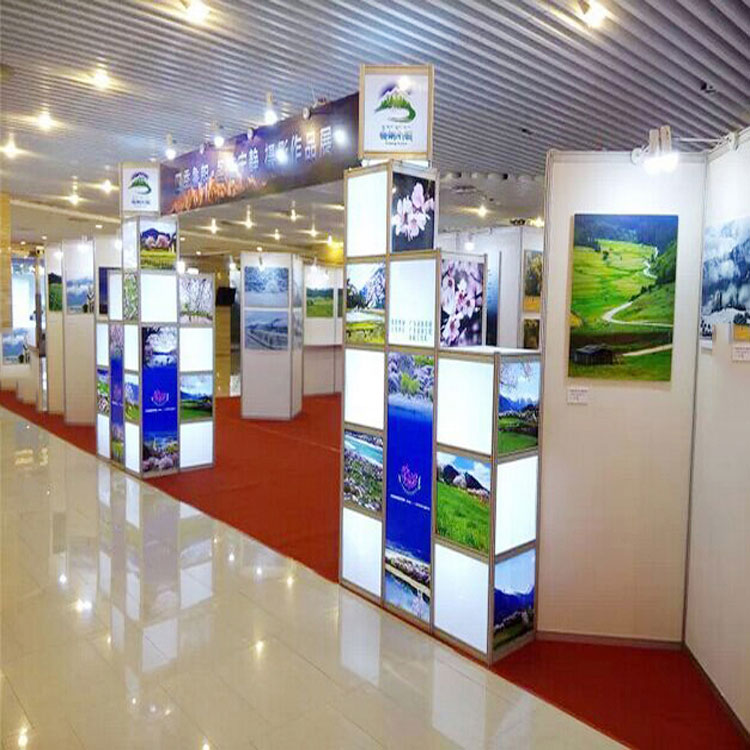 (1)八棱柱展览展板灵活组合、结构多变:可摆成一、W、N、T、M、H、L、U、 Z、E、 Y、 X型等,开头,可以实现多样化的展示效果。
